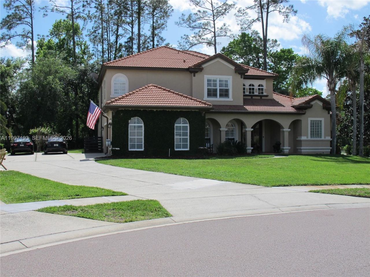 This stunning and well maintained 5 bedroom pool home nestled on nearly a half-acre cul-de-sac lot overlooks a lush forest and serene lake. Double glass front doors open to the formal living area with high tray ceilings and architectural designs. Enjoy the formal dining room complete with a white shiplap accent wall. The HUGE Family Room is big enough for the largest of families as well as a perfect entertaining space. A chefs kitchen is highlighted by double wall ovens, walk-in pantry, 42 cabin...This stunning and well maintained 5 bedroom pool home nestled on nearly a half-acre cul-de-sac lot overlooks a lush forest and serene lake. Double glass front doors open to the formal living area with high tray ceilings and architectural designs. Enjoy the formal dining room complete with a white shiplap accent wall. The HUGE Family Room is big enough for the largest of families as well as a perfect entertaining space. A chefs kitchen is highlighted by double wall ovens, walk-in pantry, 42 cabinetry, ample granite countertops, and a lengthy raised eat-in counter. The breakfast nook overlooks gorgeous views of the lake and heated pool and spa (salt water setup installed). The screened in pool/patio includes a private half bath accessible only from the pool area. The 250 gal. propane tank for the pool heater means its outdoor fun all year long! The sophisticated Master Suite. It features a cozy retreat area with a beautiful view overlooking the gorgeous pool/patio & lake. LARGE CUSTOM WALK-IN CLOSET with built-in organizers create more storage. A LAVISH MASTER BATH features 2 separate His/Hers vanities and Hers with a Makeup Vanity! There is a Roman Tub enclosed by two Roman Pillars & a custom dual head shower. All the secondary bedrooms, along with an enormous loft, and porch are located upstairs to keep the busy lives of the family private. Other upgrades include: Plantation shutters and built-in speakers throughout and a 50 amp EV/RV charging port!